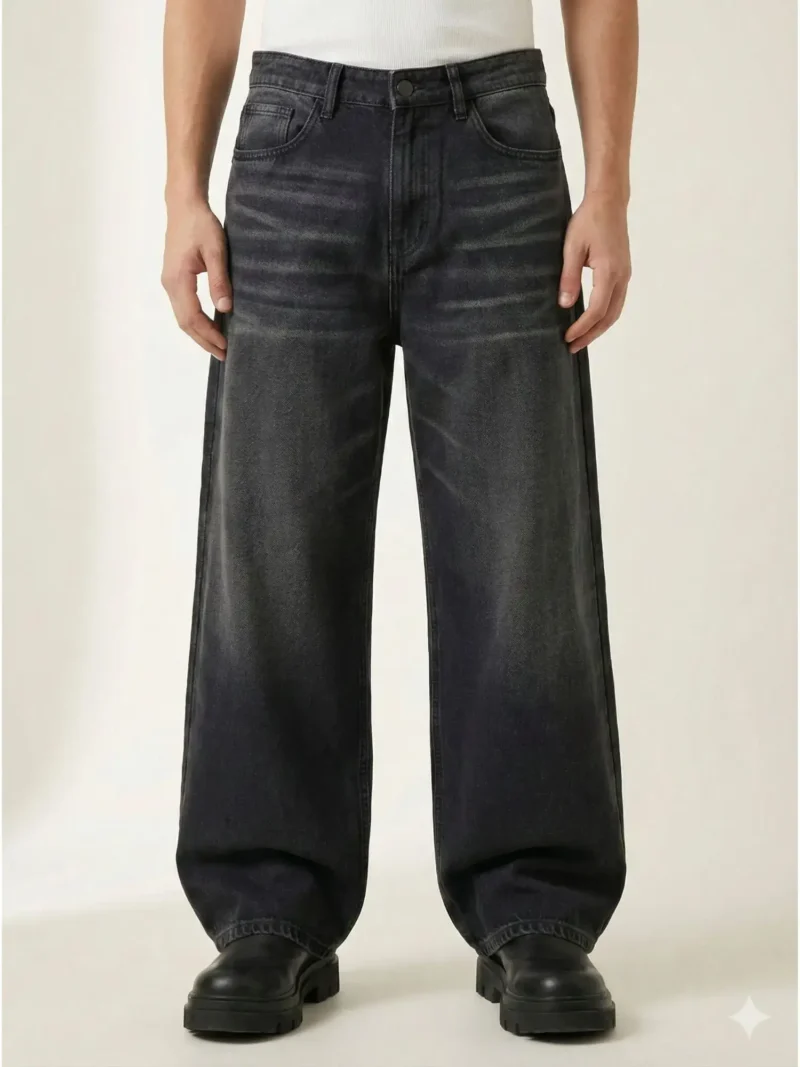 Statement super-baggy denim in a washed black finish. Relaxed, oversized silhouette with a premium streetwear feel.